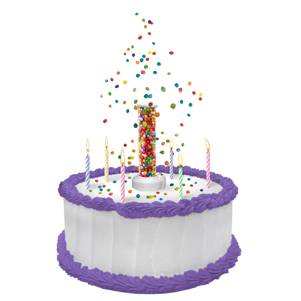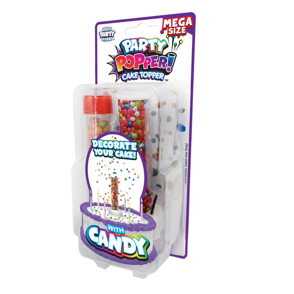 Make your birthday blow up—literally! The Mega Party Popper! Cake Topper! is the ultimate one-time-use cake accessory that turns your dessert into a party cannon of candy fun. Just like the original, this topper loads right into your cake, but with an epic twist: it explodes with colorful rainbow candy!