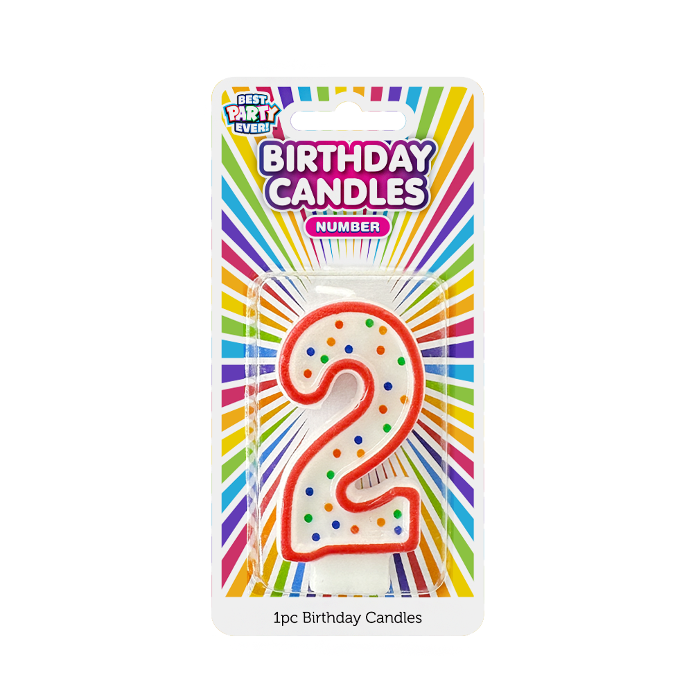 A classic look number candle to help personalize any cake. This numbered birthday candle is the perfect way to celebrate accordingly with our familiar and timeless design! Personalize any cake with the number two birthday candle.