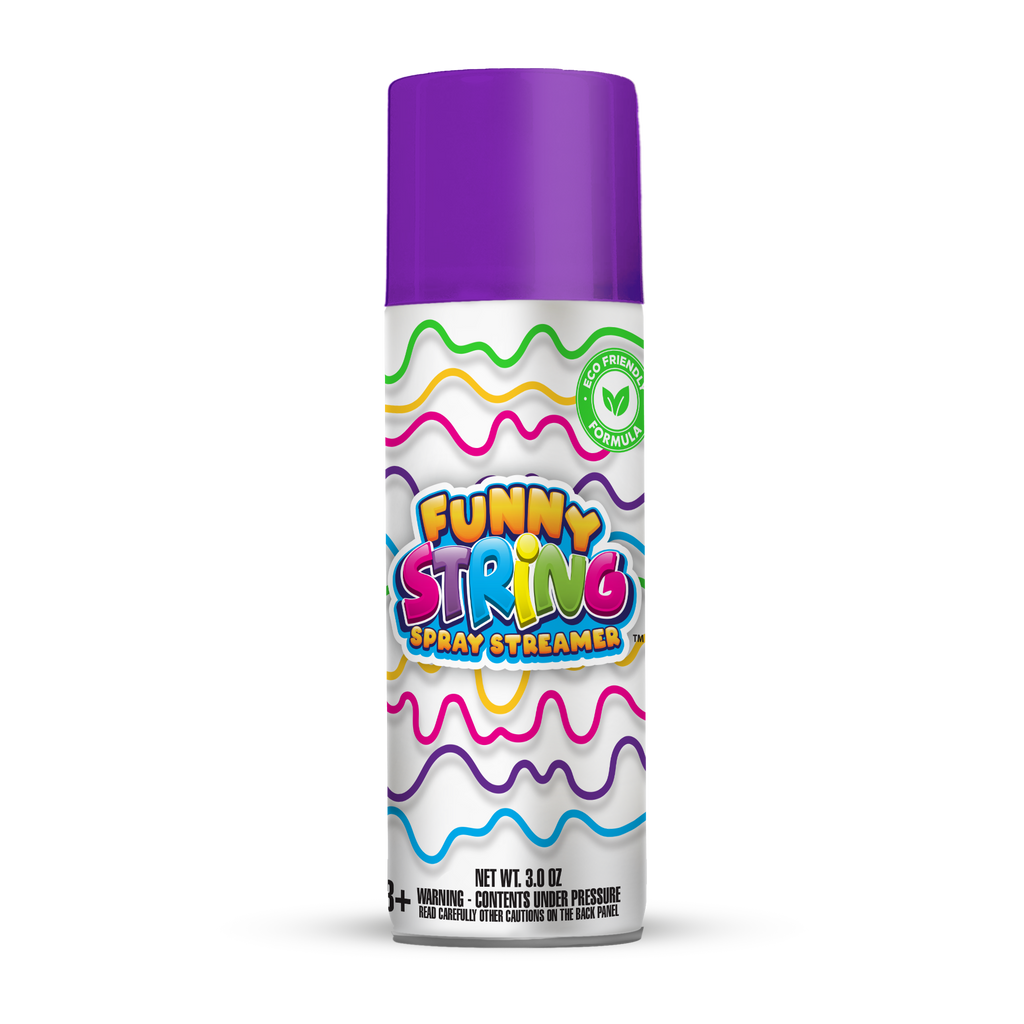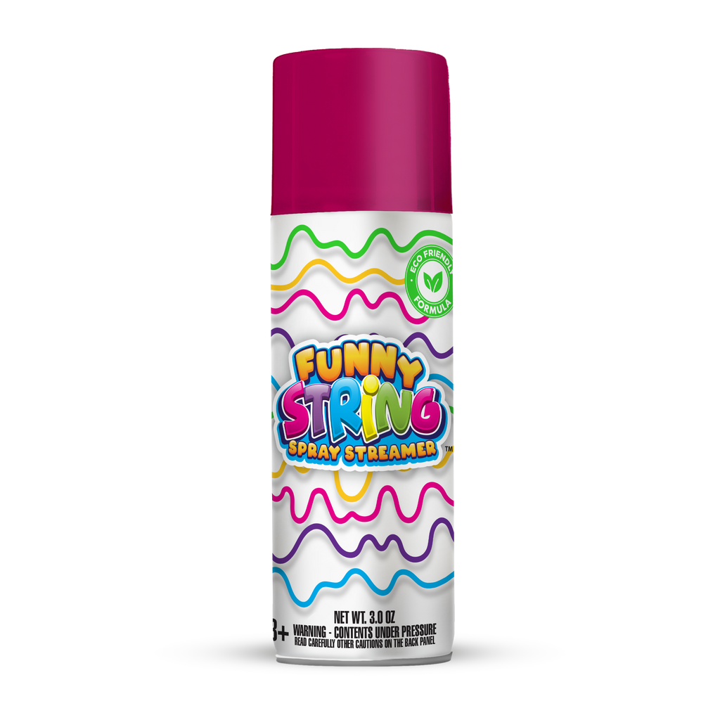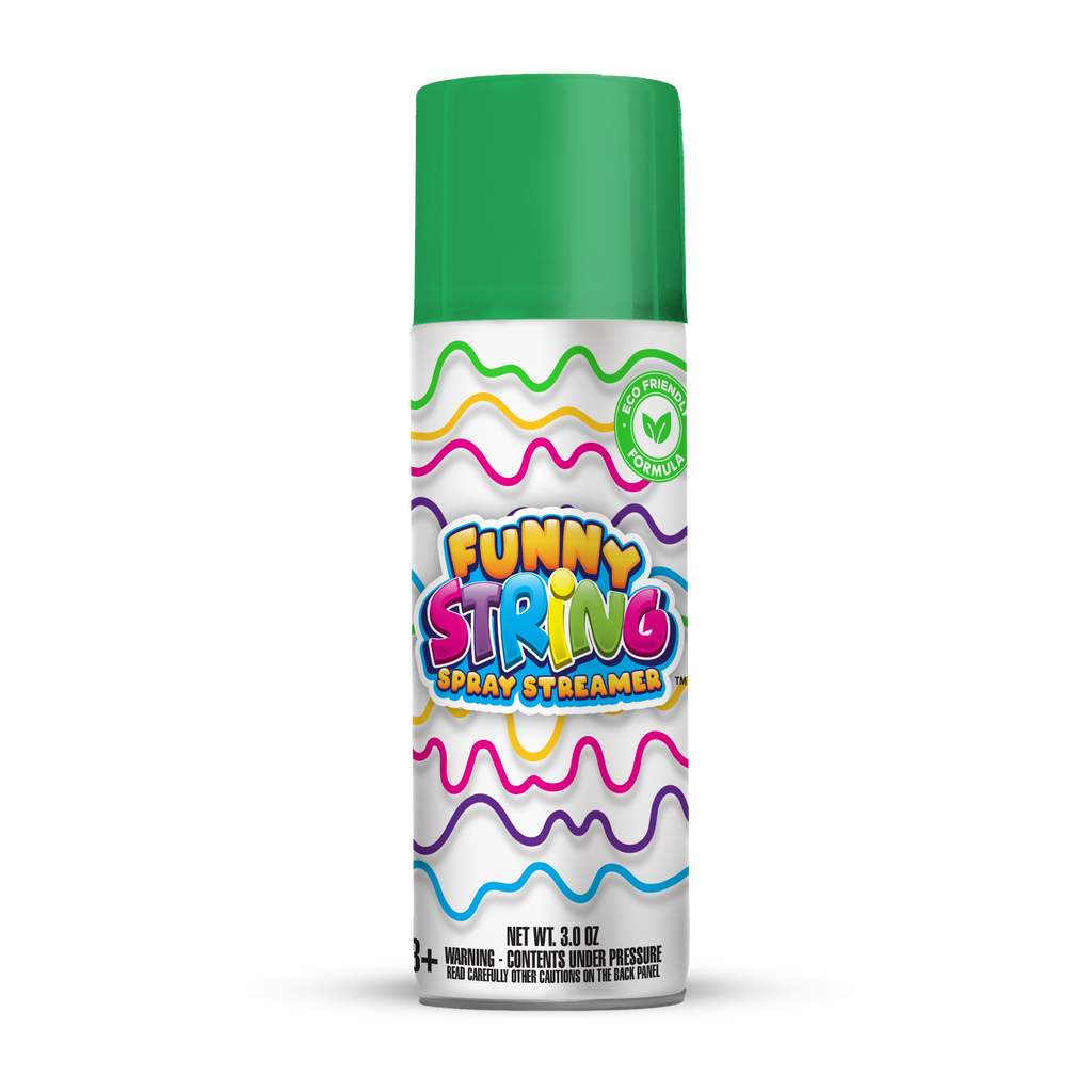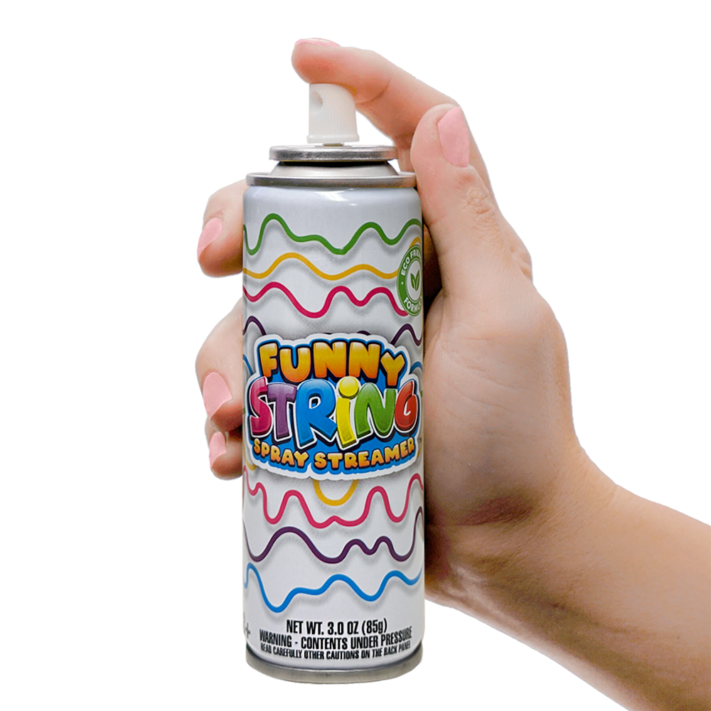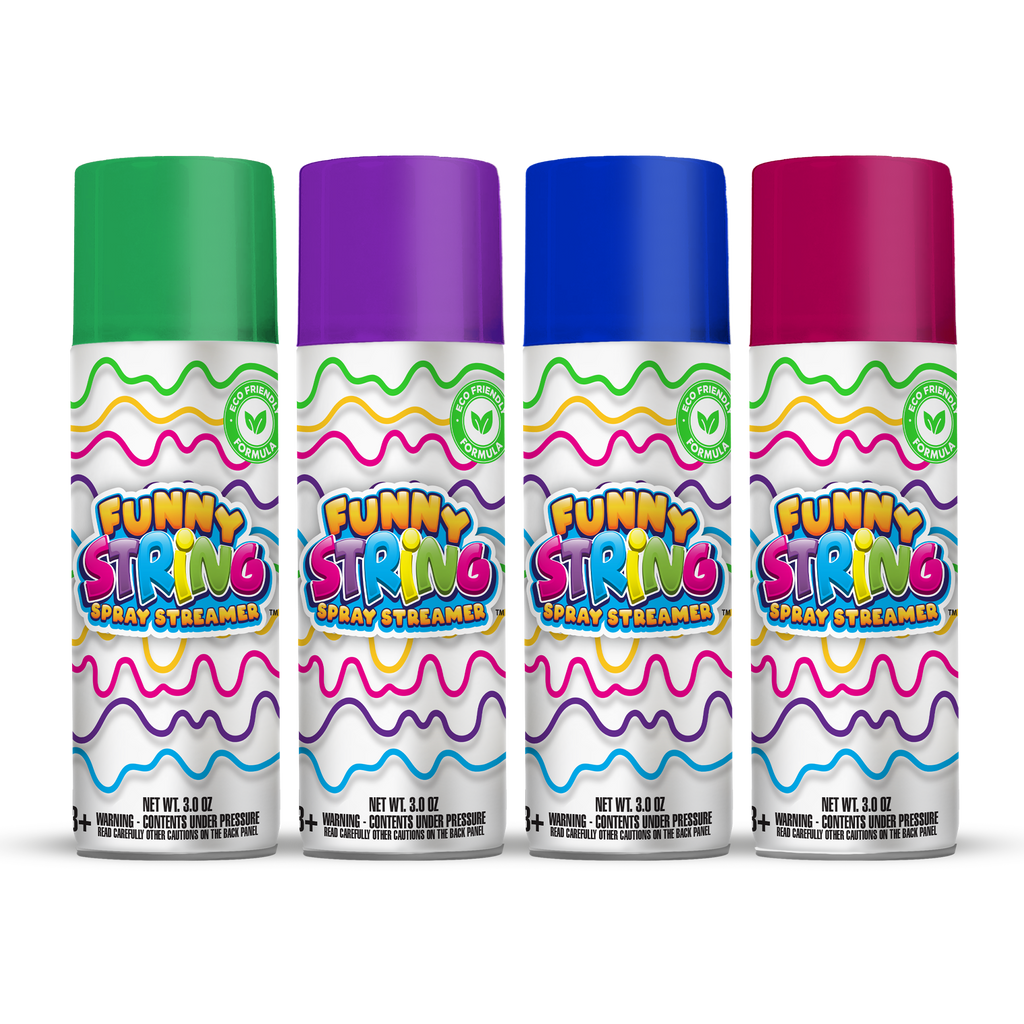 Perfect for parties and celebrations of all types! Use Funny String Spray Streamers all around the room to create a colorful celebration for any occasion. Try all four colors; green, purple, pink, and blue. Just take off the lid, aim the Funny String Spray Streamer, and cover your target in colorful streamers. Get Funny String Spray Streamers for your next big celebration!