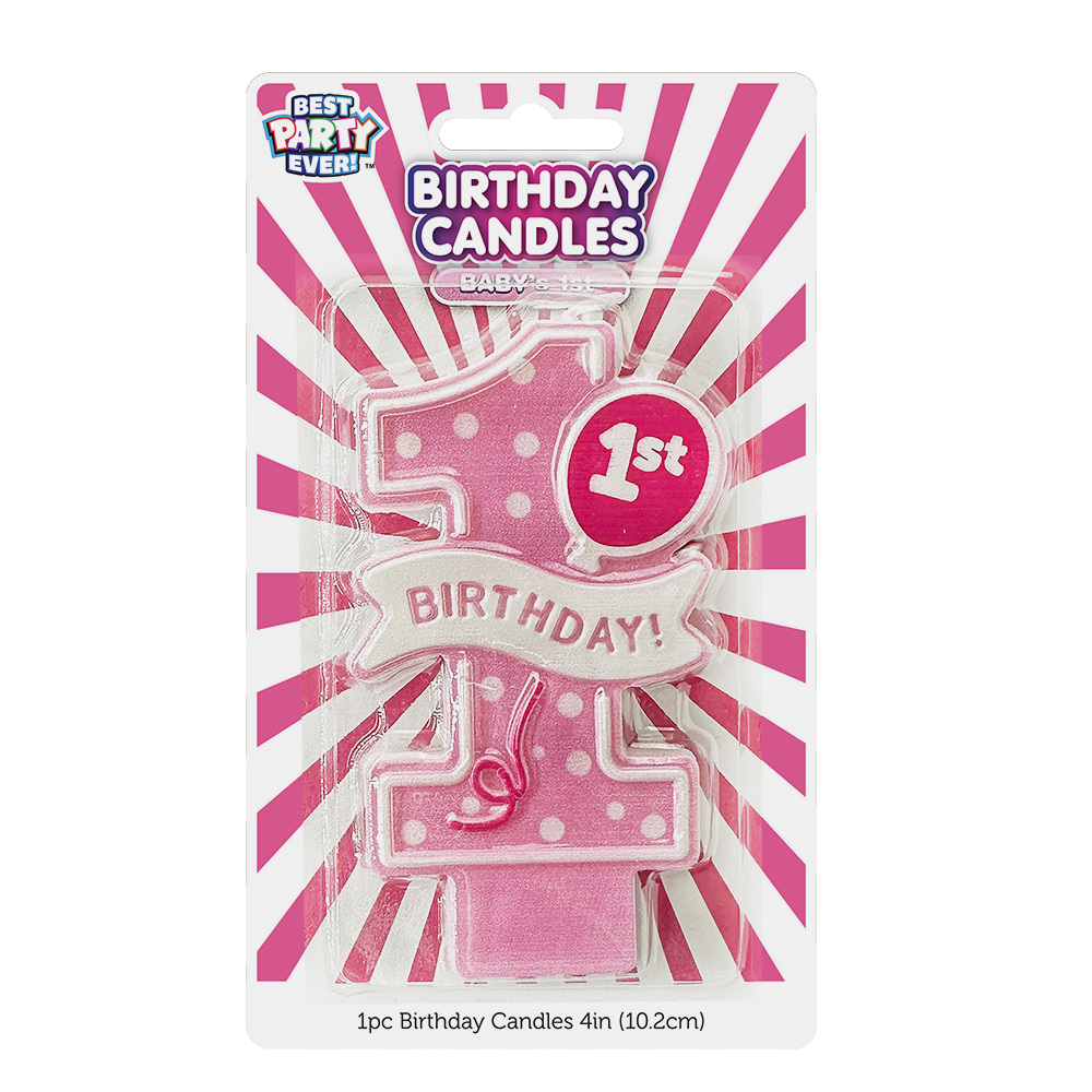 Celebrate your baby's first birthday with our special candle. Create lasting memories celebrating a baby's only first birthday candle. This pink candle is designed to celebrate the once in a lifetime occasion, and to make someone's first ever birthday even more magical!