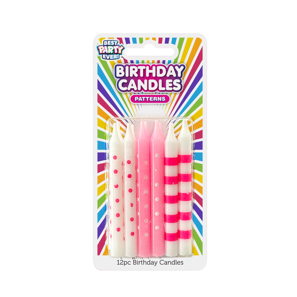 Assorted Pattern Pink & White Birthday Candles