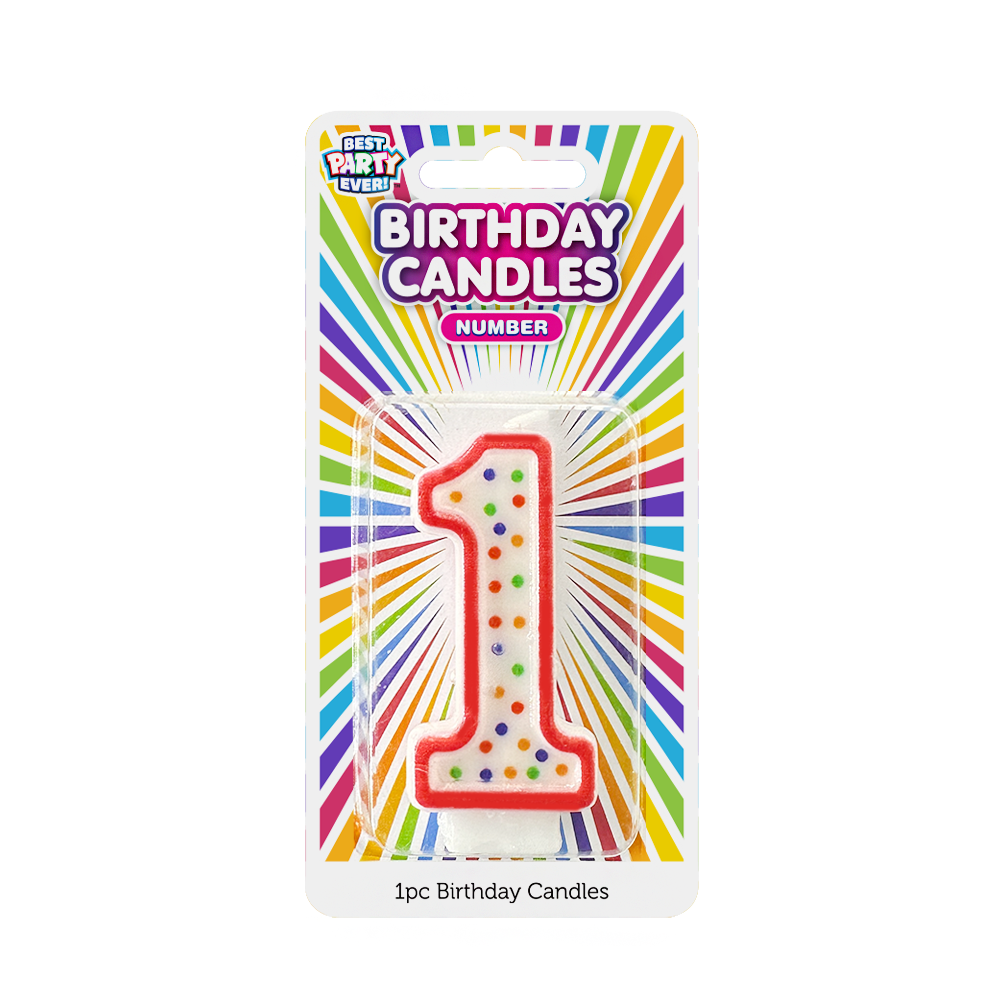 A classic look number candle to help personalize any cake. This numbered birthday candle is the perfect way to celebrate accordingly with our familiar and timeless design! Personalize any cake with the number one birthday candle.