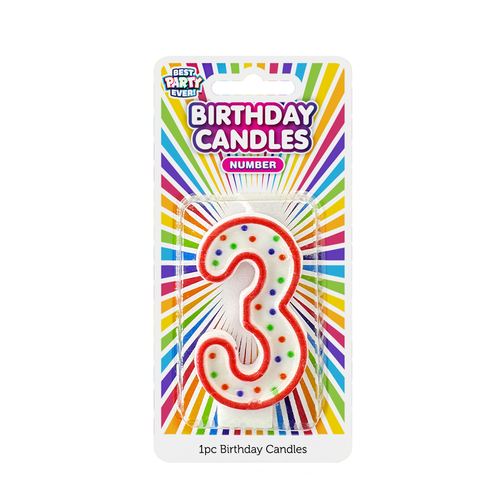 A classic look number candle to help personalize any cake. This numbered birthday candle is the perfect way to celebrate accordingly with our familiar and timeless design! Personalize any cake with the number three birthday candle.
