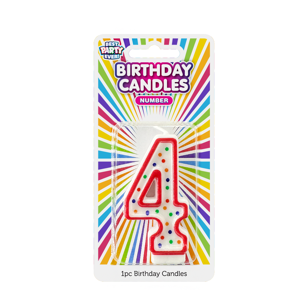 A classic look number candle to help personalize any cake. This numbered birthday candle is the perfect way to celebrate accordingly with our familiar and timeless design! Personalize any cake with the number four birthday candle.