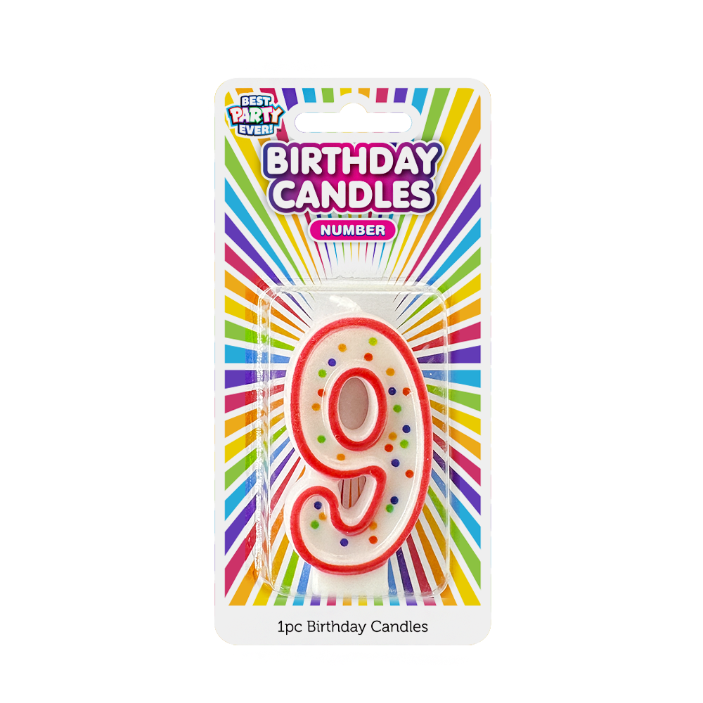 A classic look number candle to help personalize any cake. This numbered birthday candle is the perfect way to celebrate accordingly with our familiar and timeless design! Personalize any cake with the number nine birthday candle.